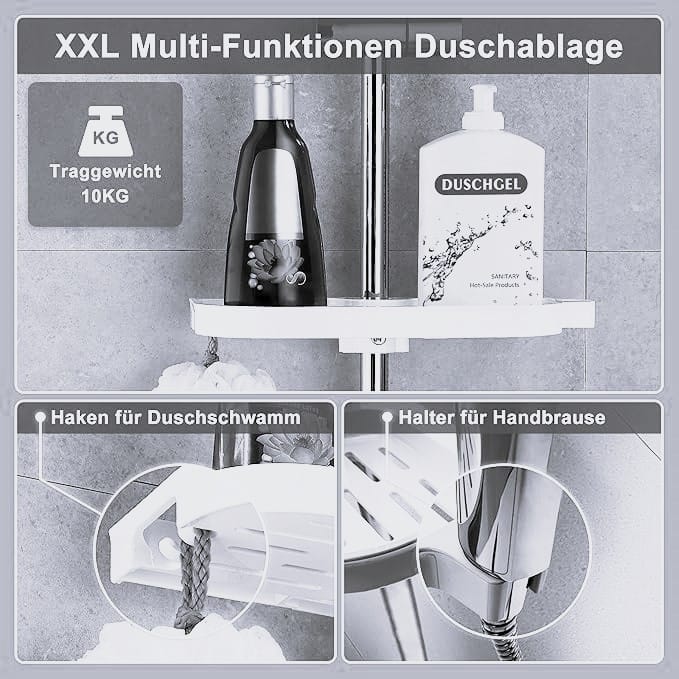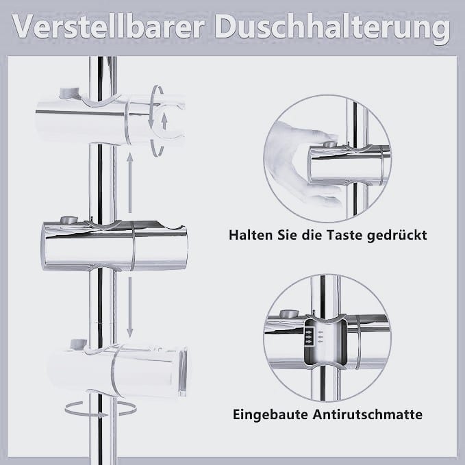 / Görbach Barre de Douche 70cm avec Étagère, Acier Inoxydable Chromé, Support Pommeau et Fixations Réglables