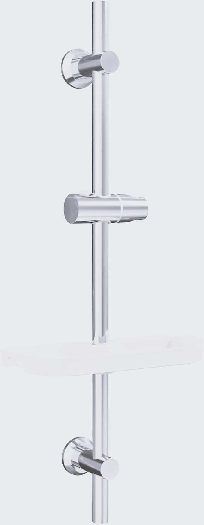 Görbach Barre de Douche 70cm avec Étagère, Acier Inoxydable Chromé, Support Pommeau et Fixations Réglables