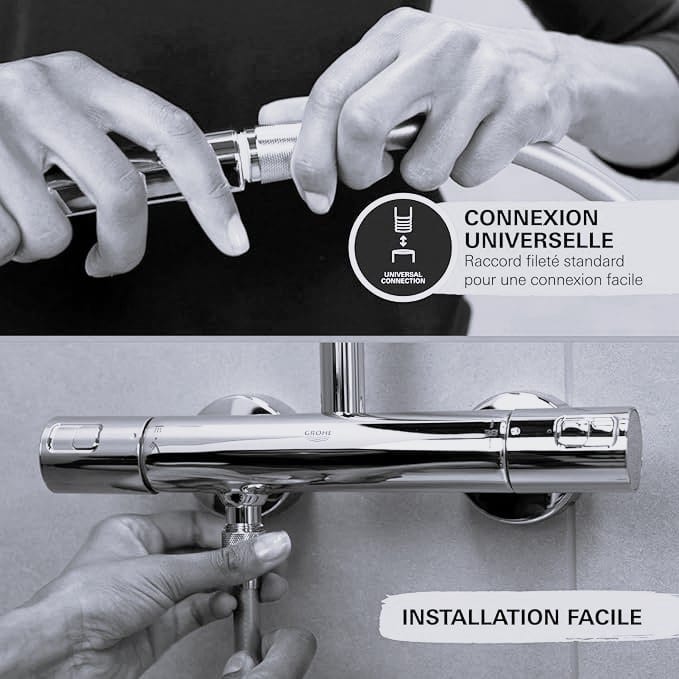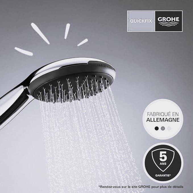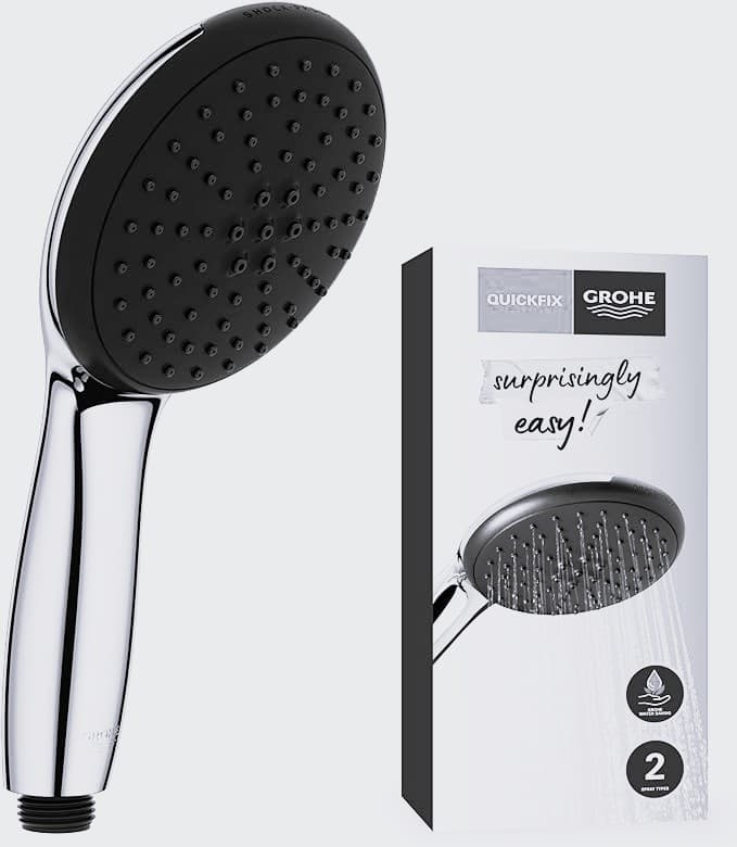 / GROHE Vitalio Start 110 – Douchette Ronde 11 cm, 2 Jets (Pluie et Stimulant), Économie d’Eau, Sélection Facile, Anti-Calcaire, Finition Chromée