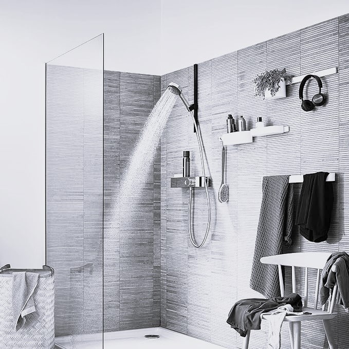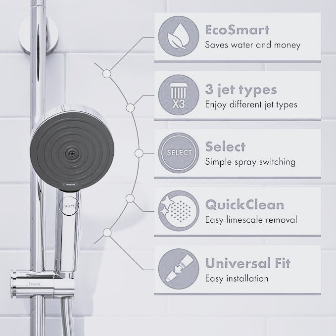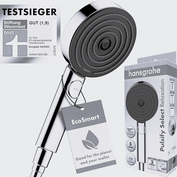/ hansgrohe Pulsify Select S – Douchette ÉcoSmart 9 l/min, 3 Types de Jets (Edition Relaxation), Pommeau de Douche Rond 105 mm, Finition Chromée