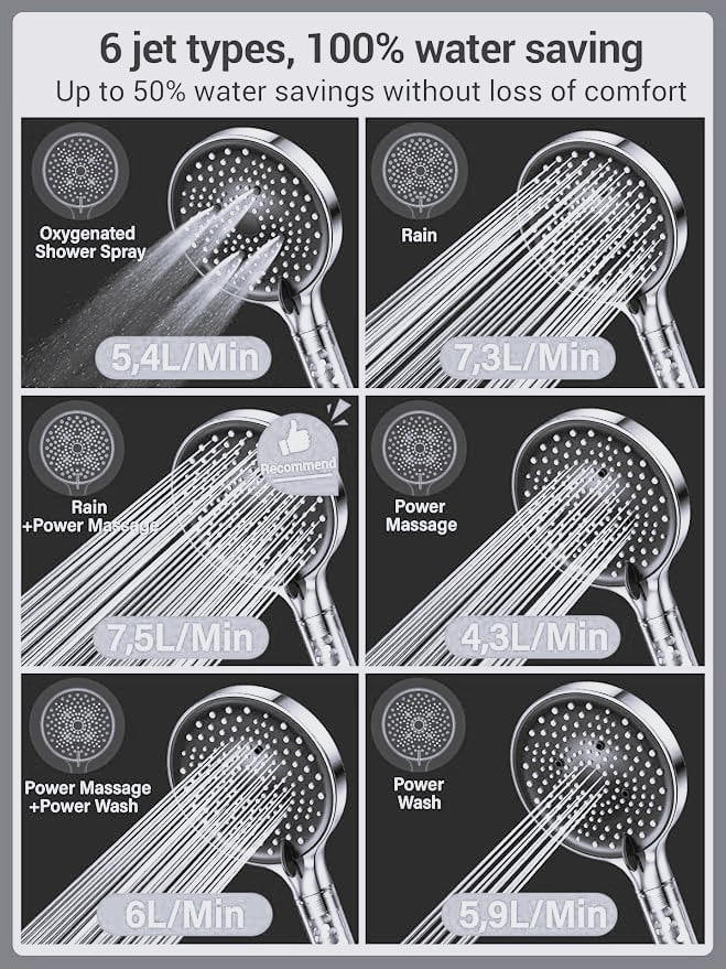 Avec un débit maximum de 7,5 L/min, le YEAUPE PRO offre une pression suffisante pour une douche agréable, tout en consommant moins d’eau qu’un pommeau standard. Ses différents modes de jets s’adaptent à vos besoins :